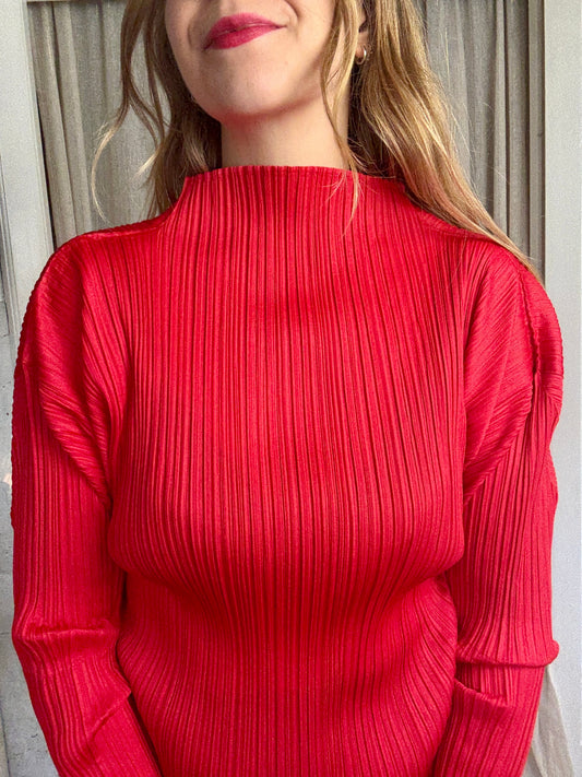 ISSEY MIYAKE PLEATS PLEASE RED BLOUSE - ONE SIZE