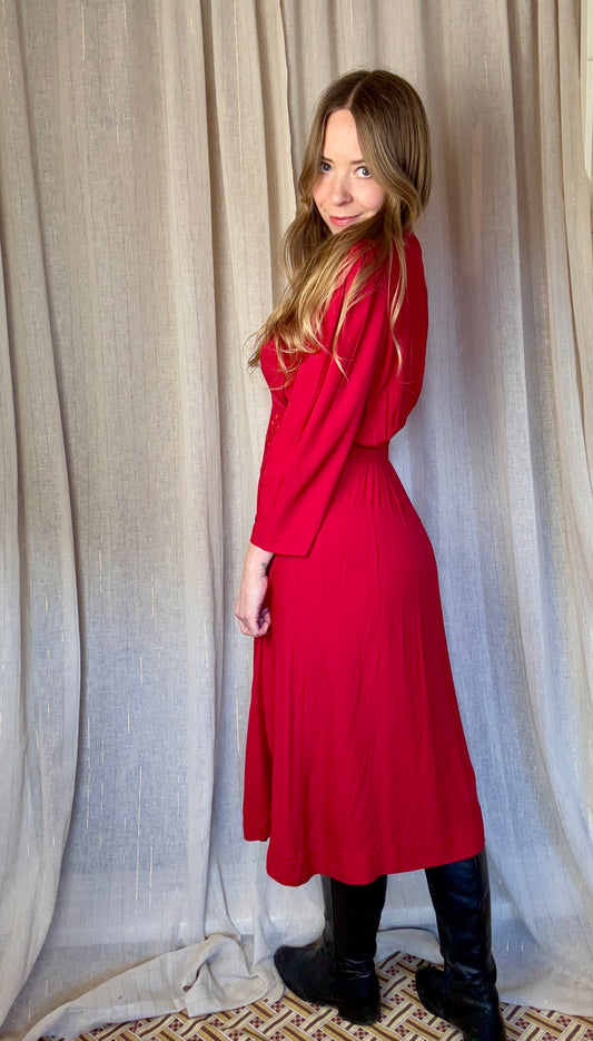 Sold outRED VELVET DILARA DRESS - UK 8/10