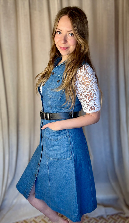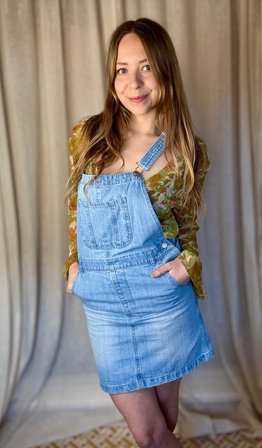 Sold outDENIM DUNGAREE DRESS - UK 10
