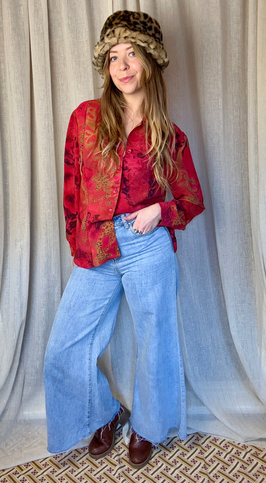 RED FLORAL JOPLIN SHIRT - UK 14/16