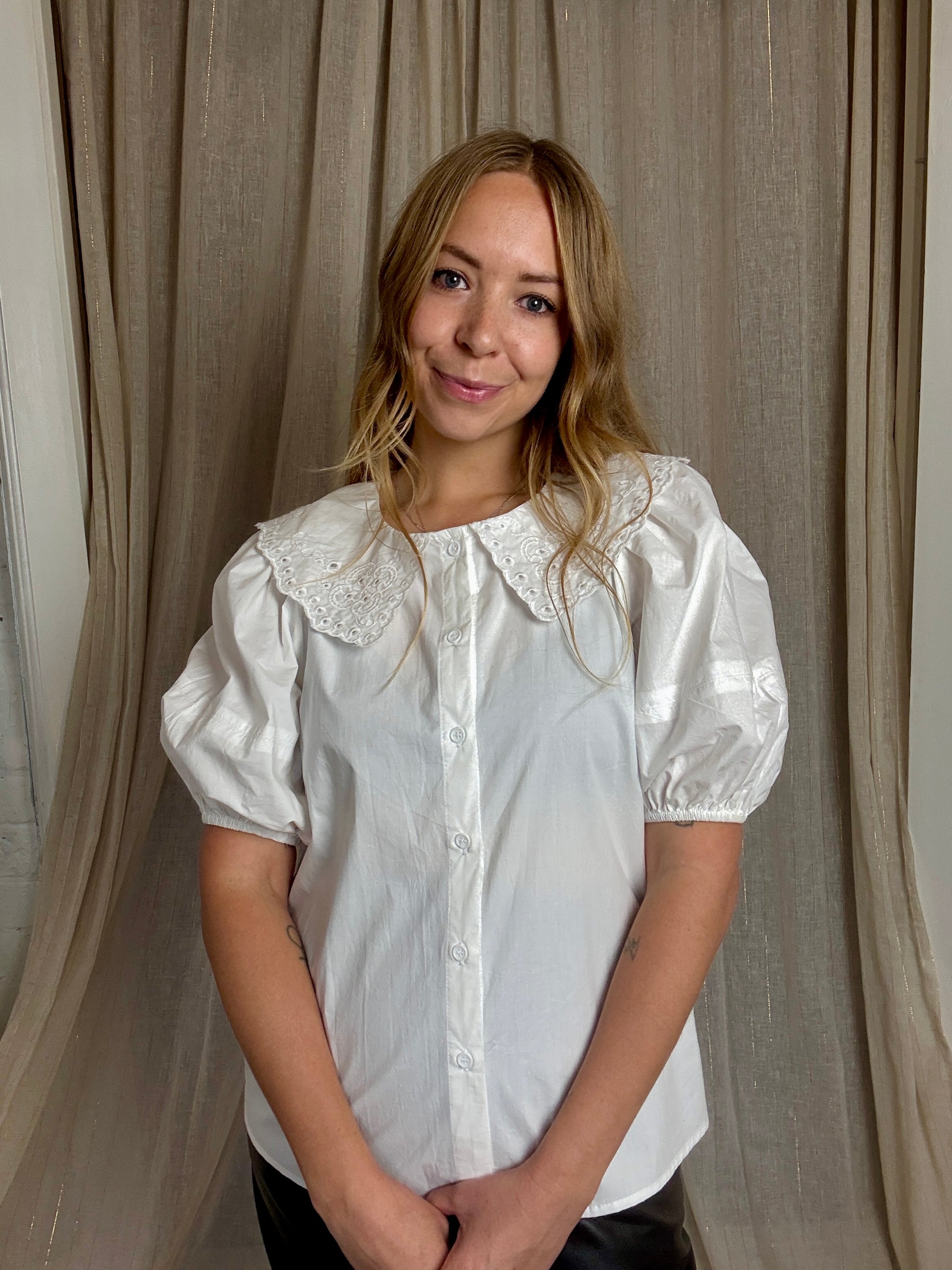 100% COTTON EMBROIDERED COLLAR EDIE BLOUSE - UK 12/14