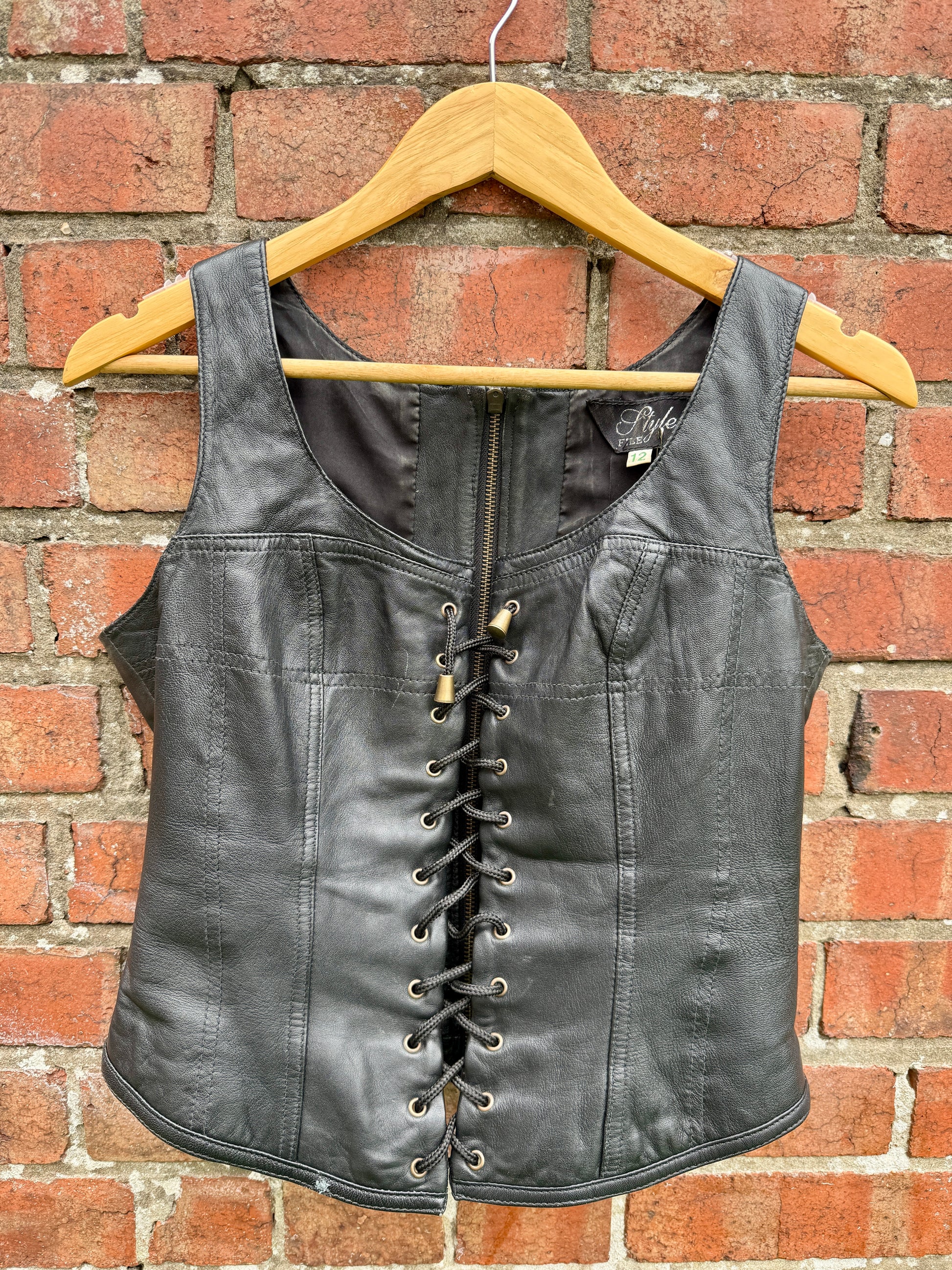 100% REAL LEATHER LACE-UP CORSET WAISTCOAT - 10/12