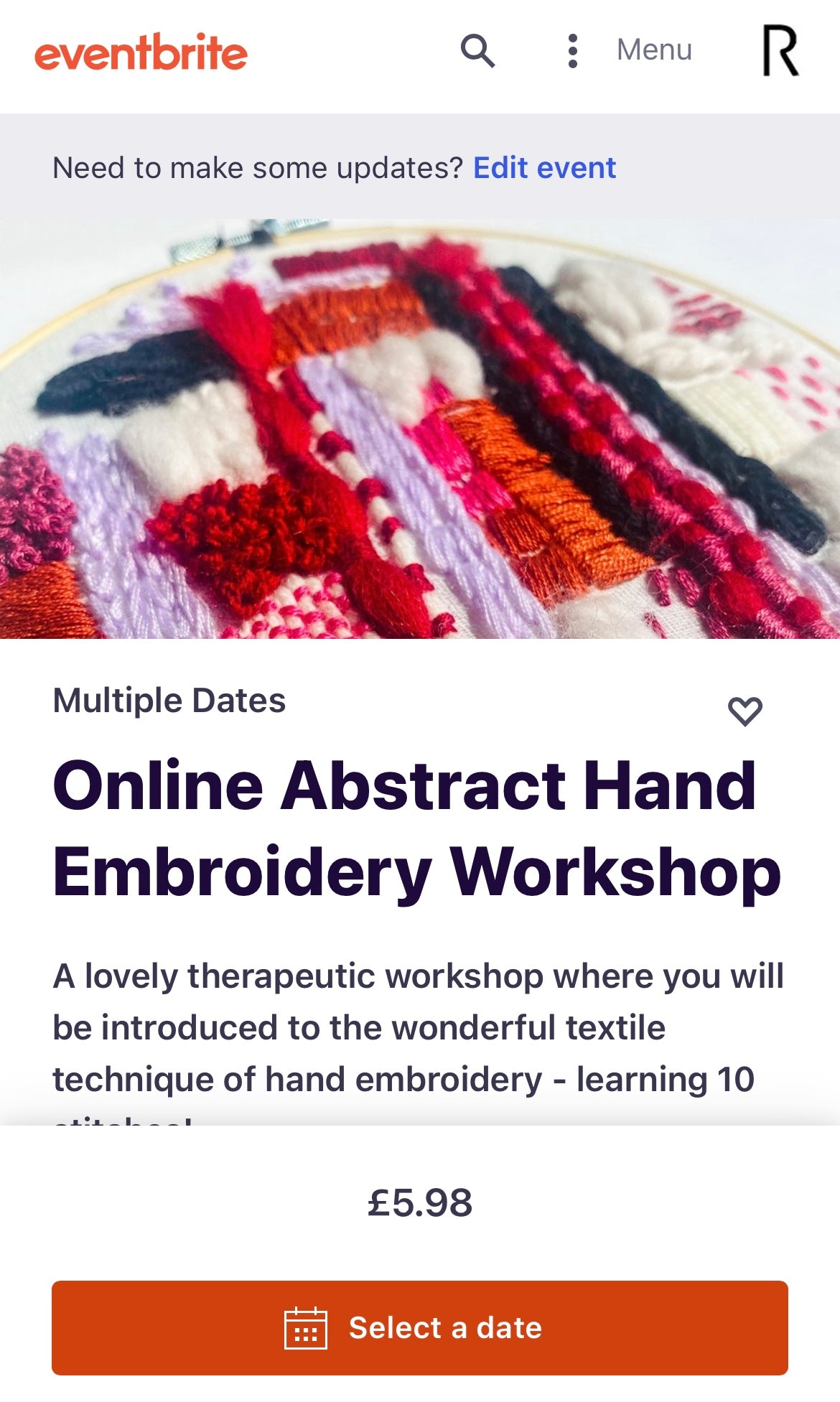 If you would like a tutorial on these stitches, you can join us for our Abstract Embroidery sessions (£5 per 1 hour event) via the link below. You will also receive a recording of the workshop so you can watch anytime in the comfort of your own home.