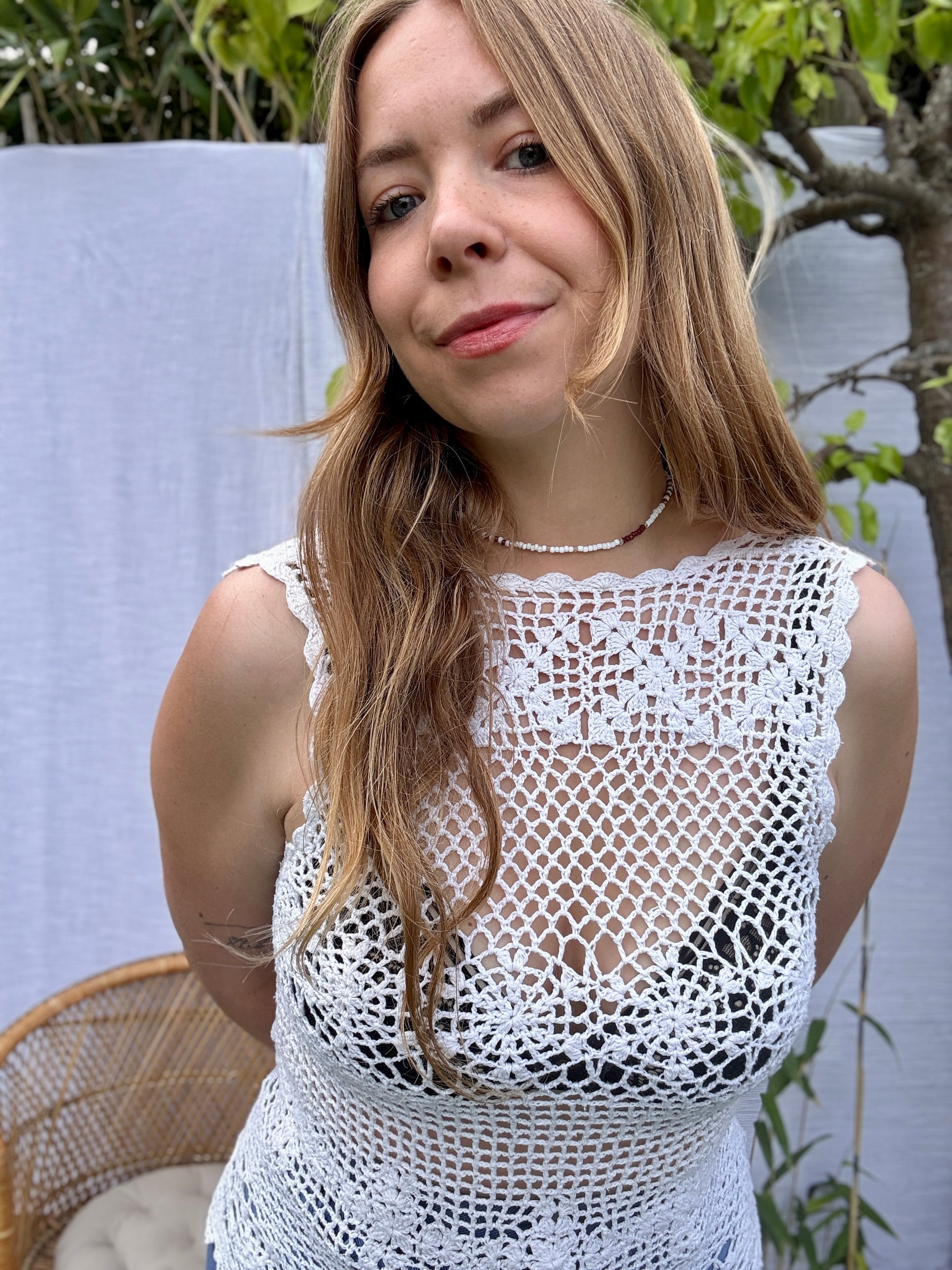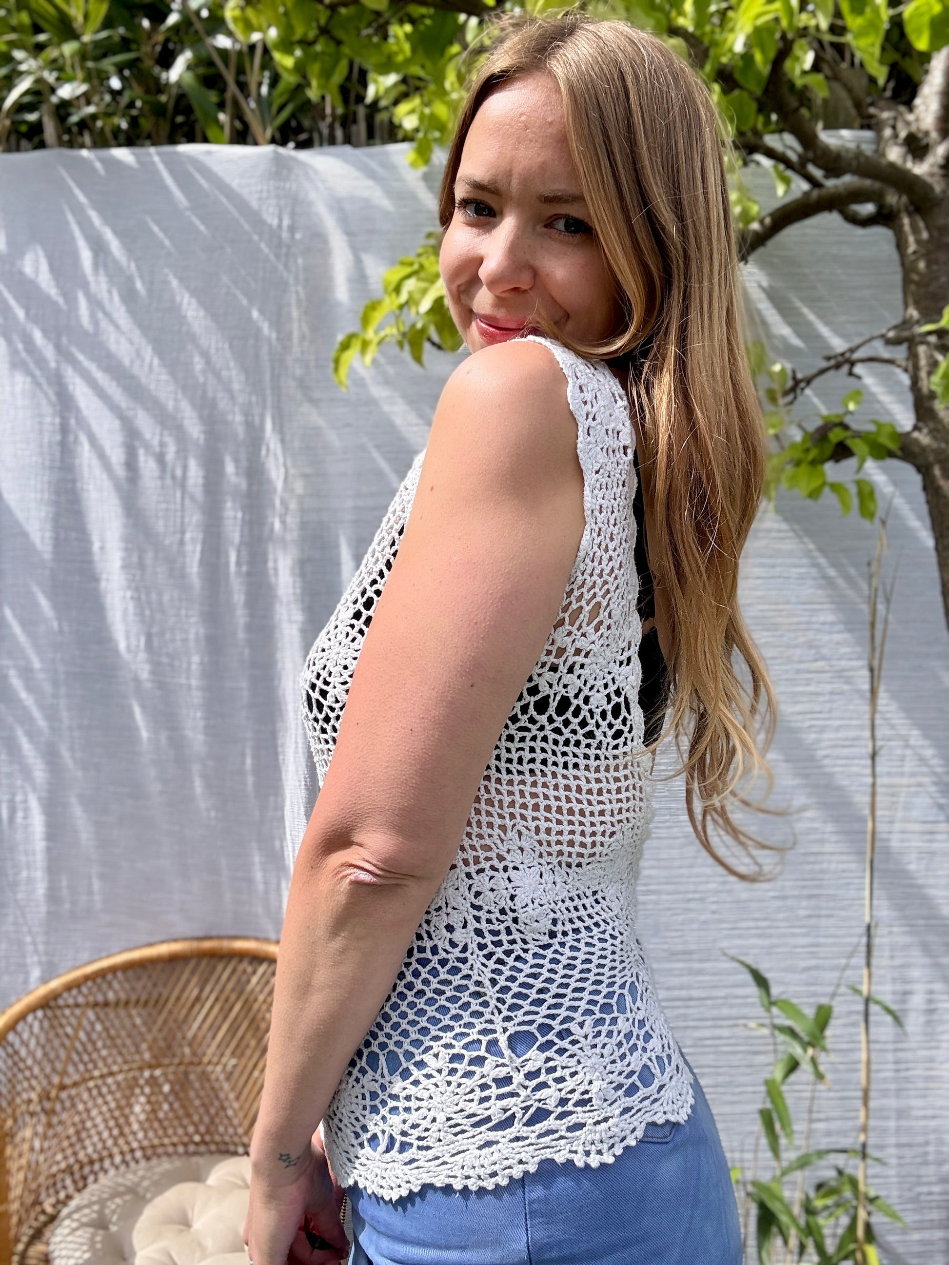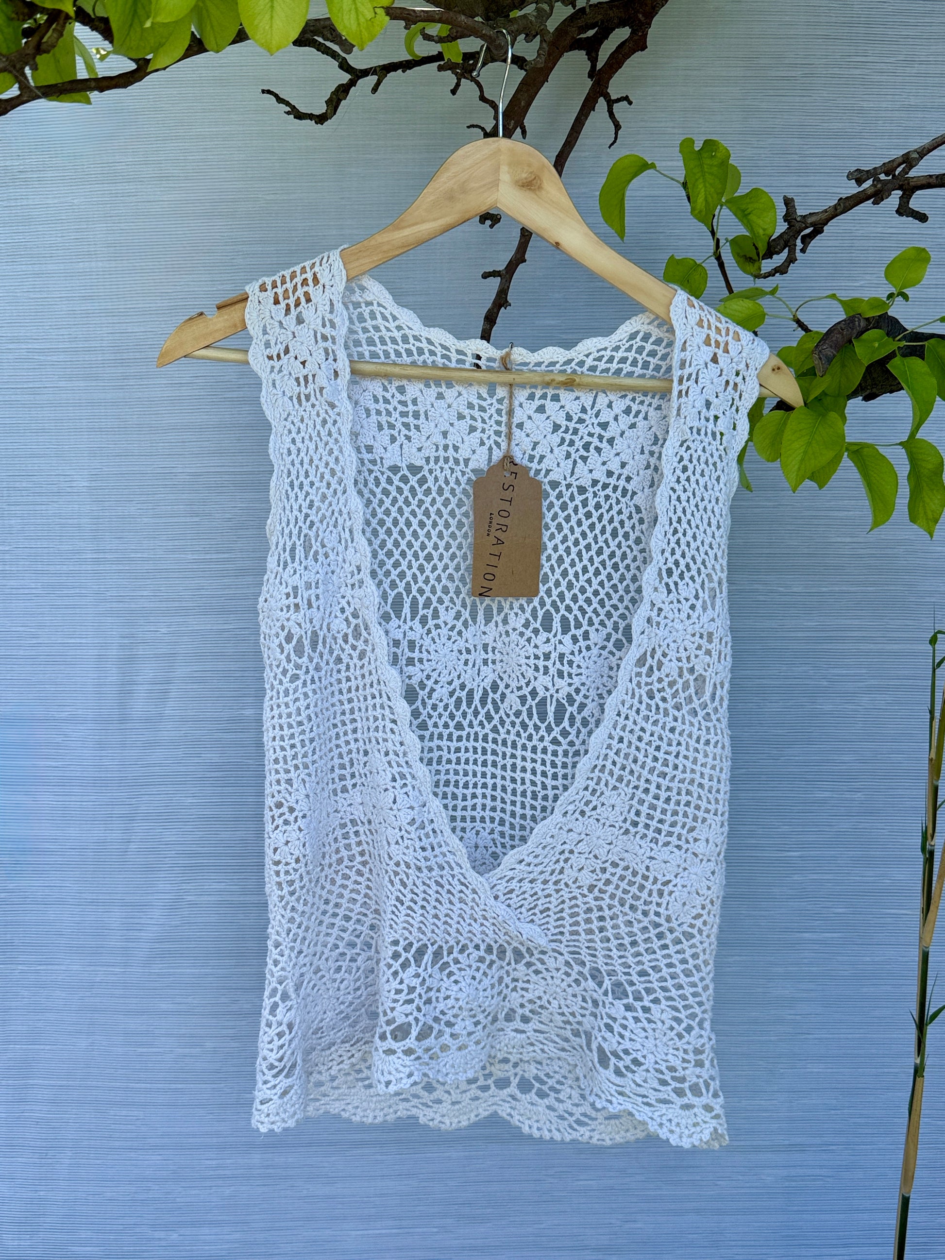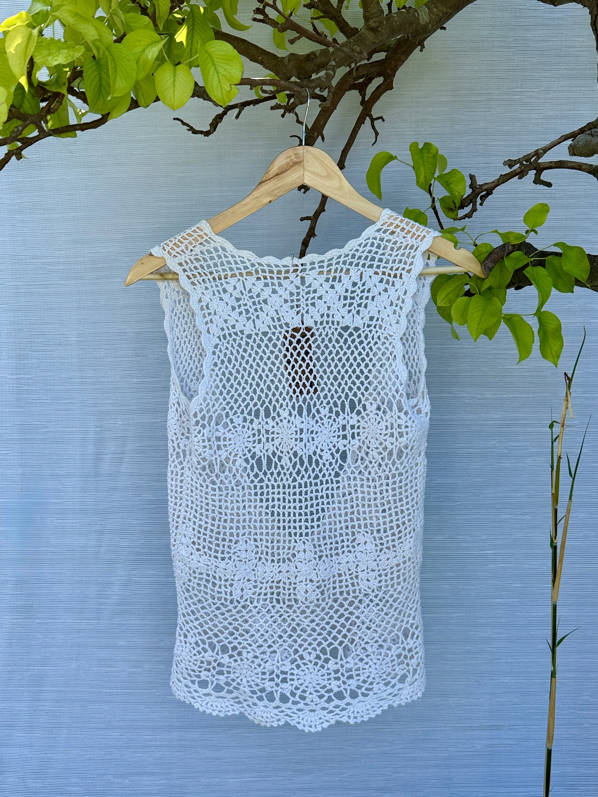 Beautiful crochet vest with low V-neck ~ can be worn with the low V at the front or the back