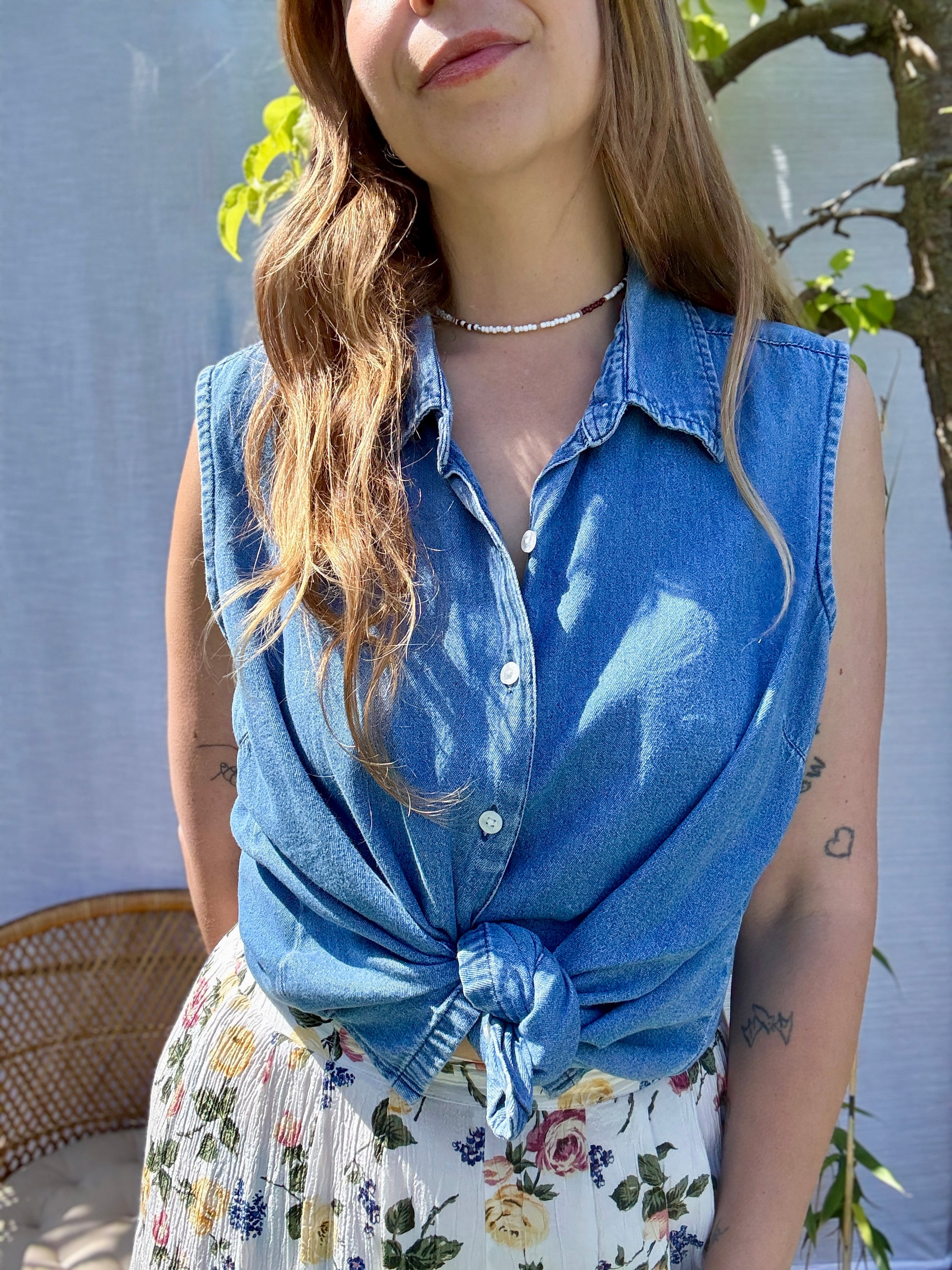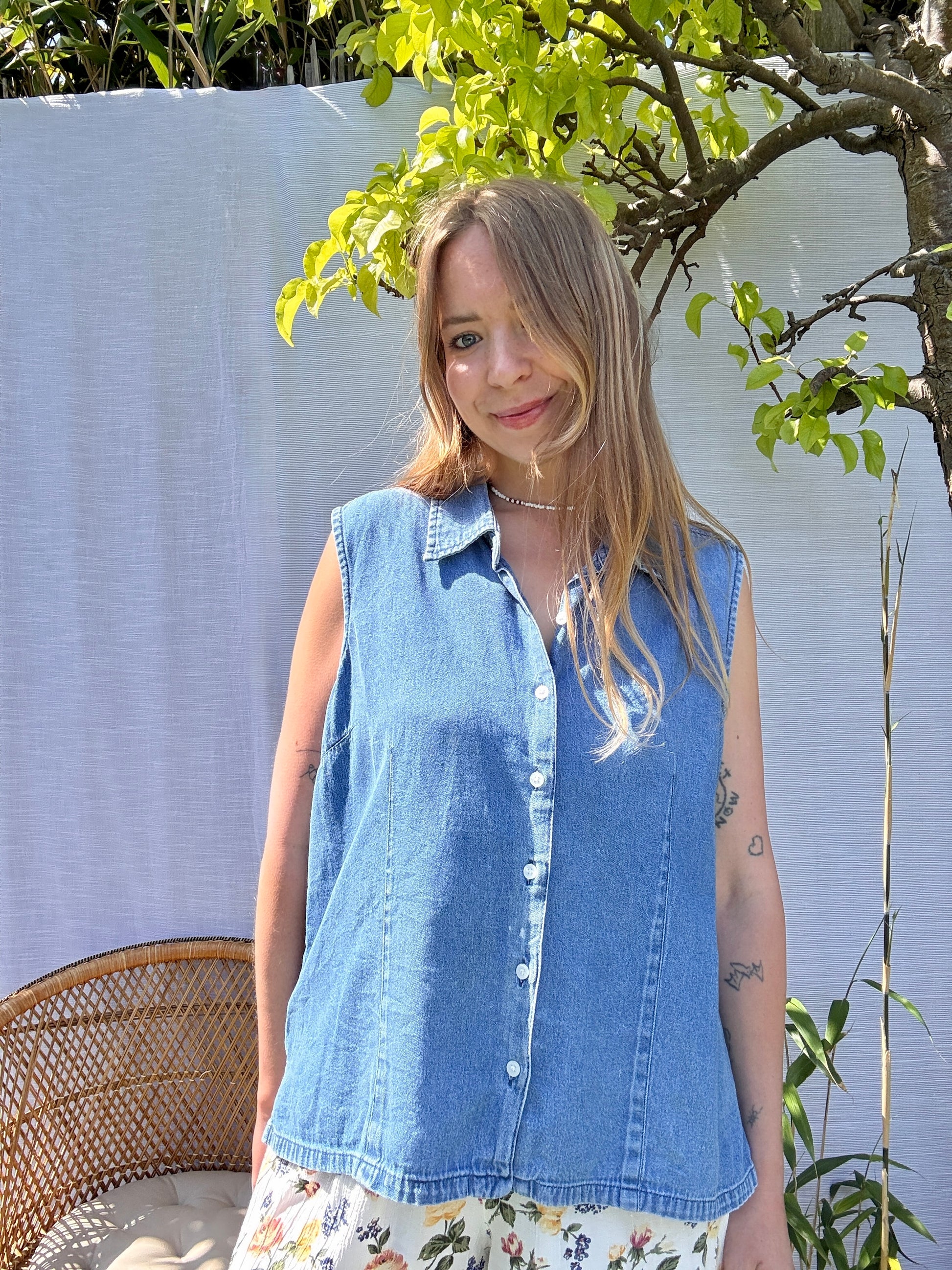 DENIM DORA SLEEVELESS SHIRT - UK 10-18
