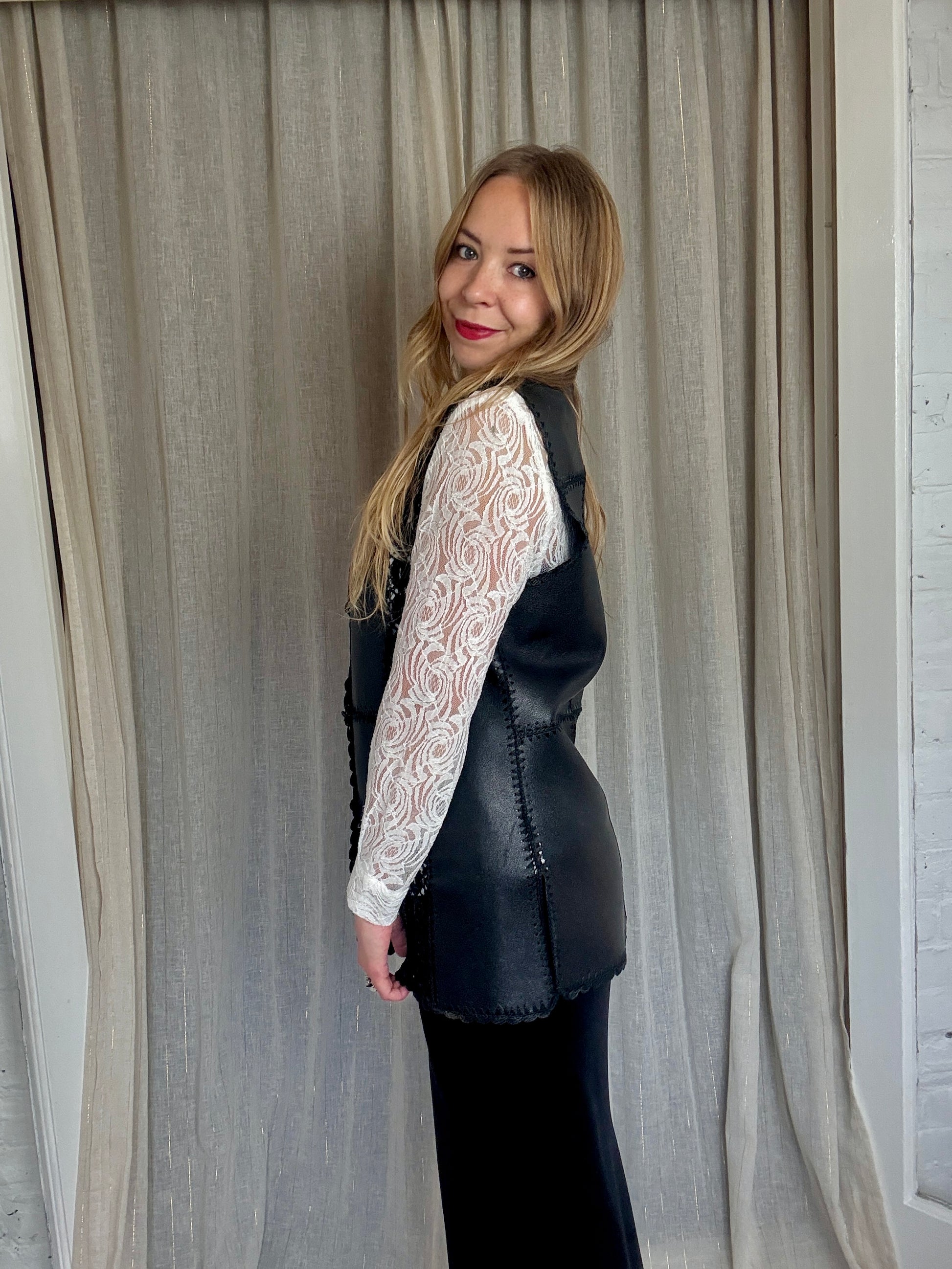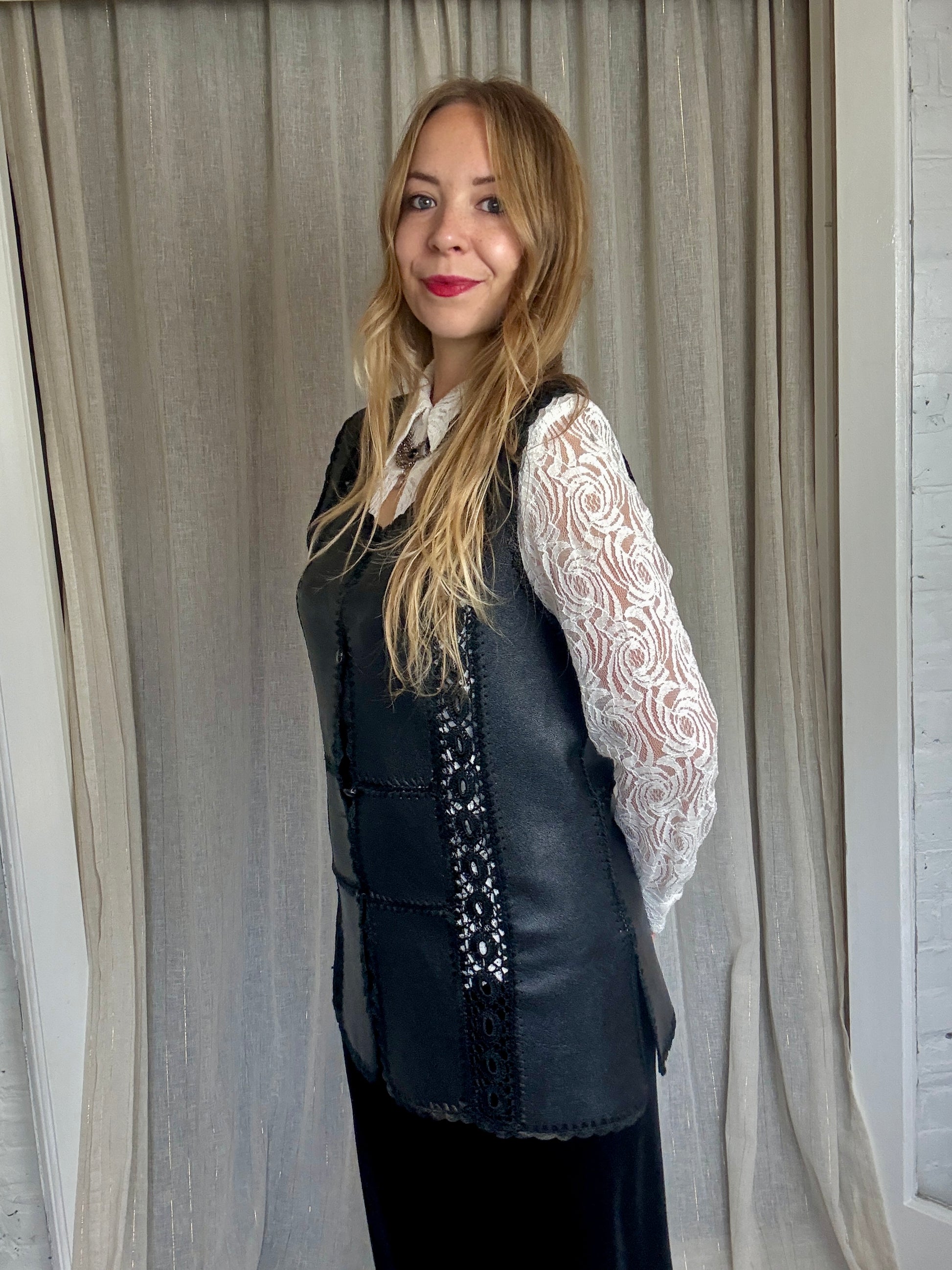 Incredible Faux Leather Waistcoat with Crochet Trim Detail