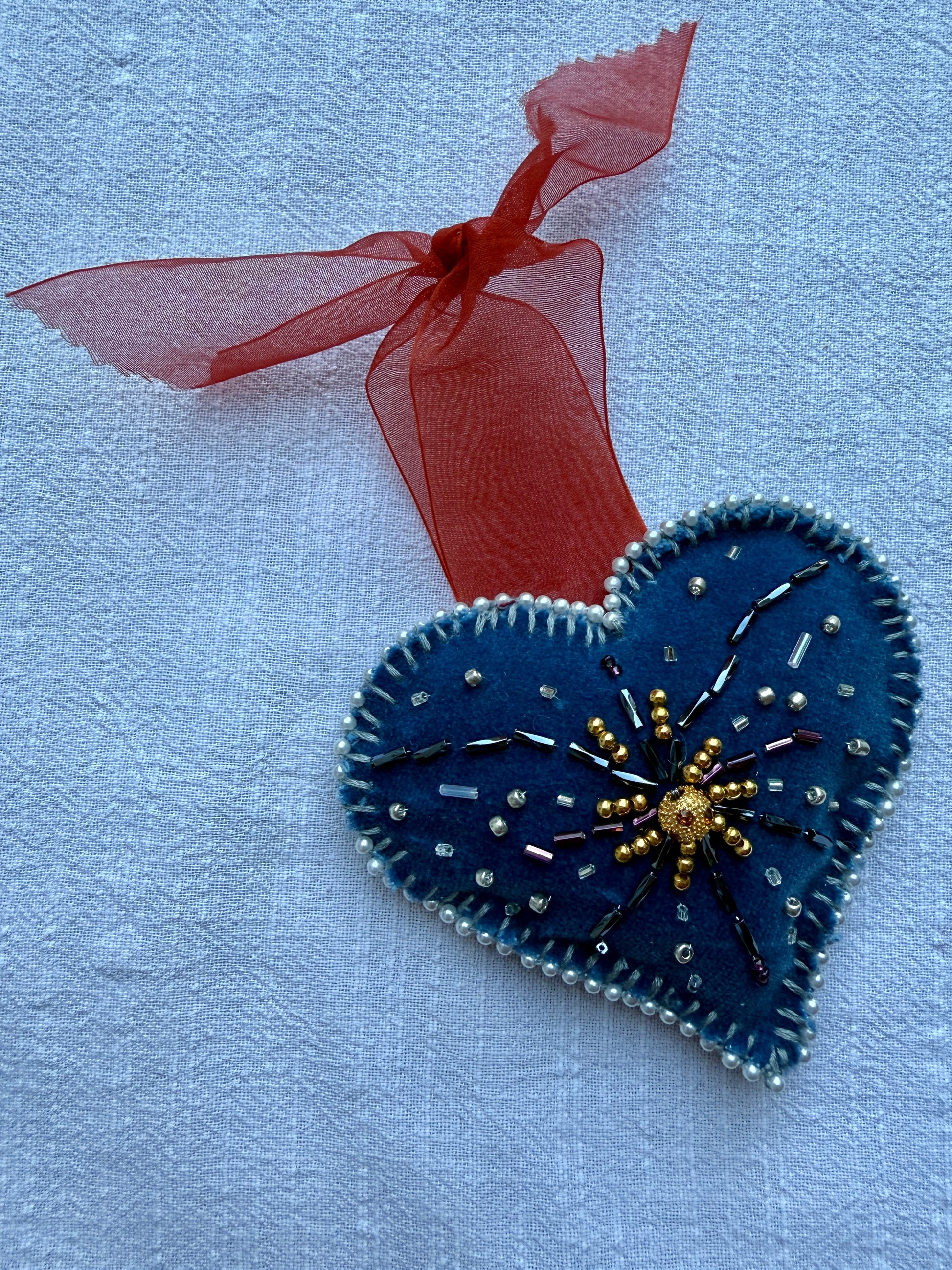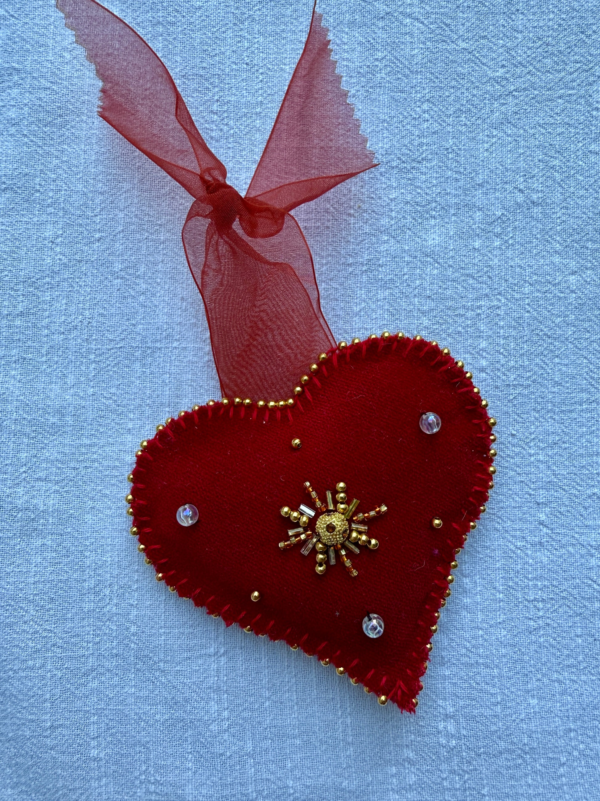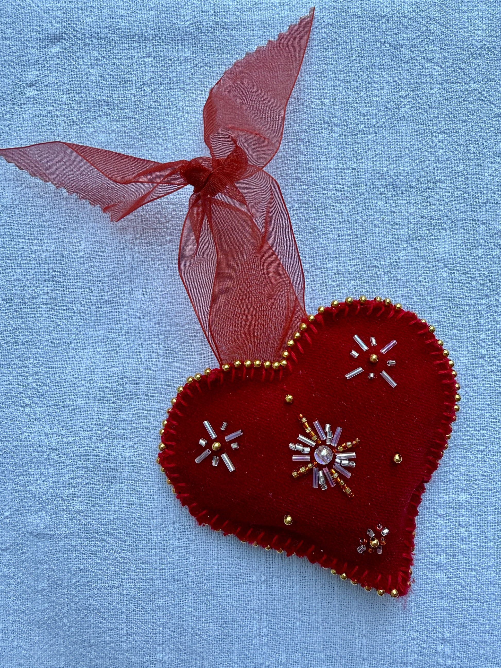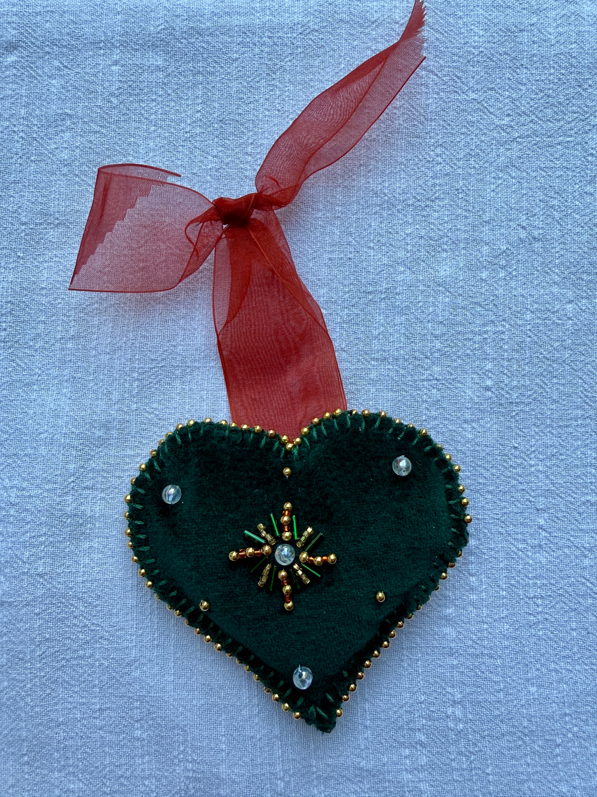 HANDMADE BEADED CHRISTMAS TREE HEARTS
