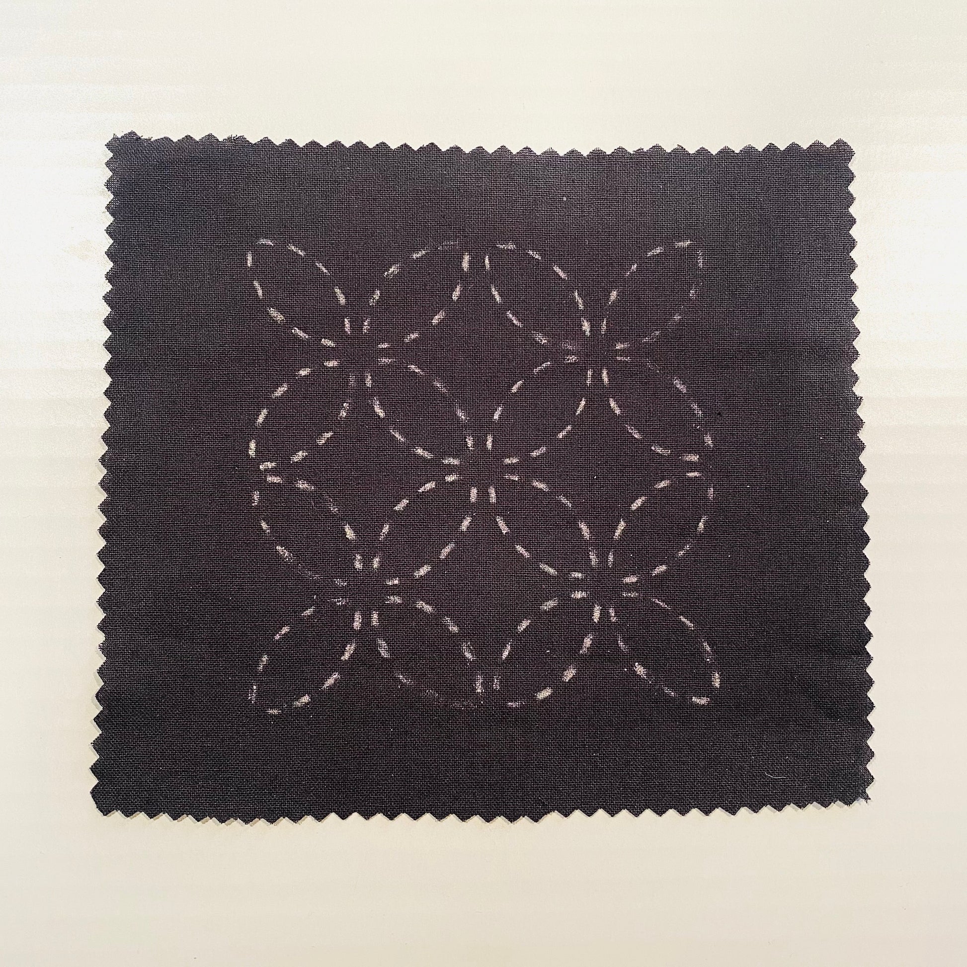 Included in the kit are beautiful cotton threads, fabric patches with x3 traditional decorative sashiko designs and a sashiko needle.