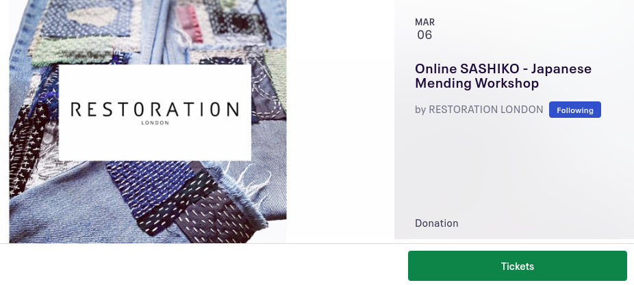 We run a variety of different Mending sessions each month including Sashiko, Boro, Darning and Hand sewing which you can view via our events calendar.