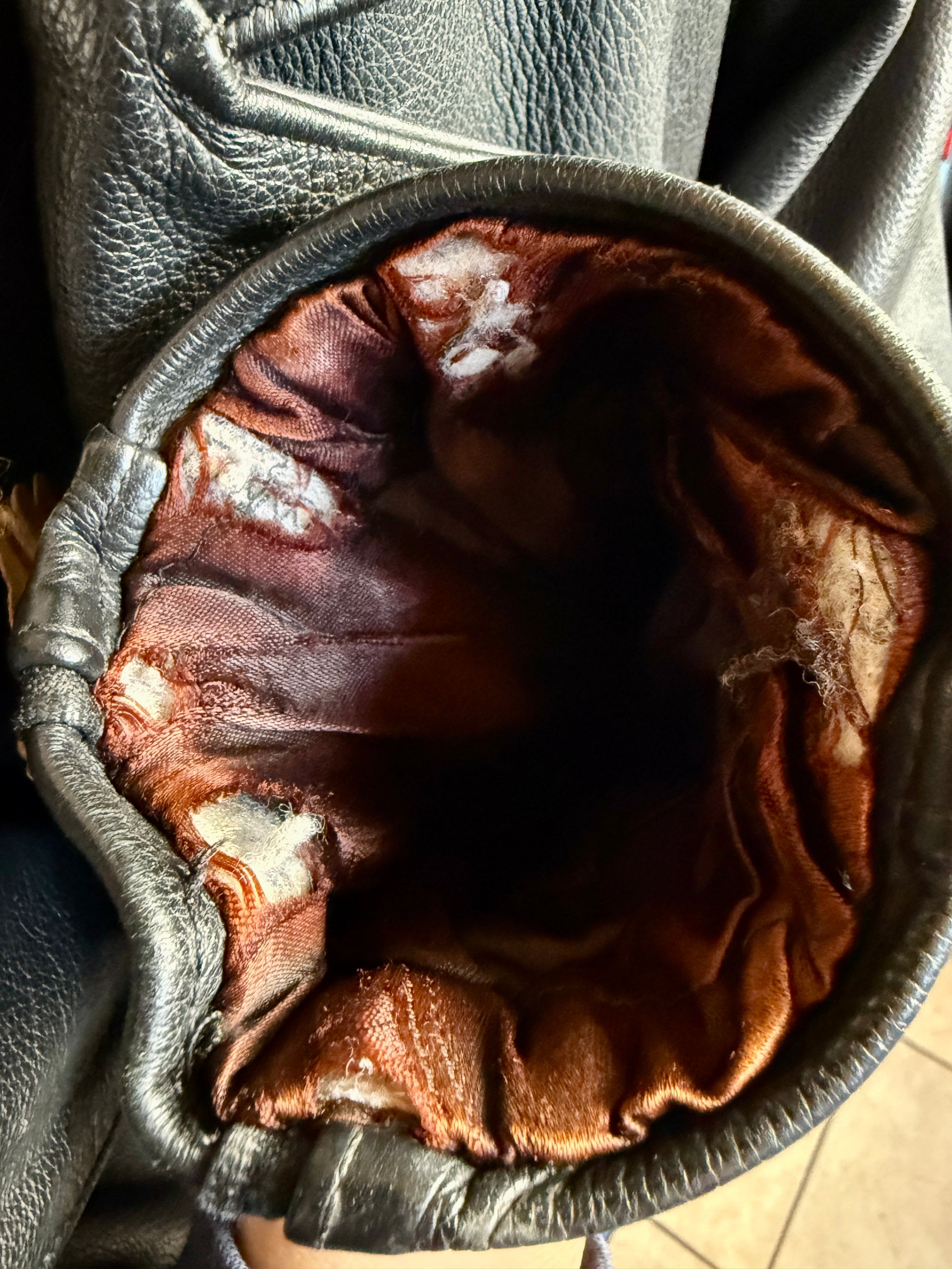 There is slight wear on the lining around the cuff on the inside of the sleeves but totally unnoticeable when worn (see photo)