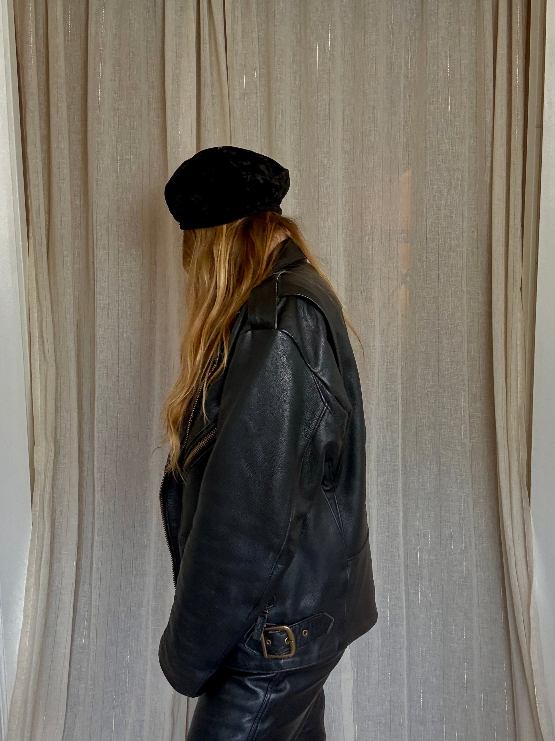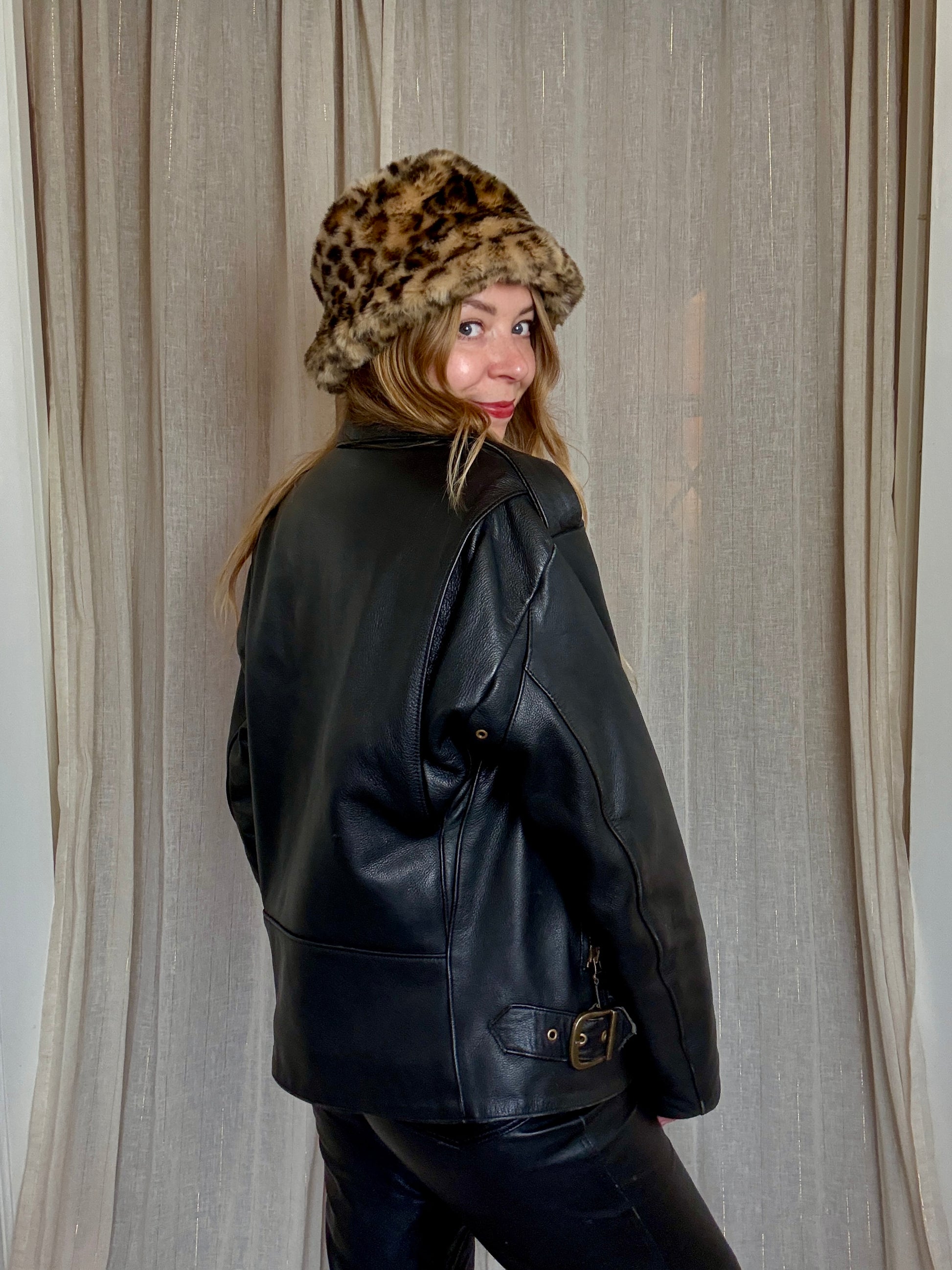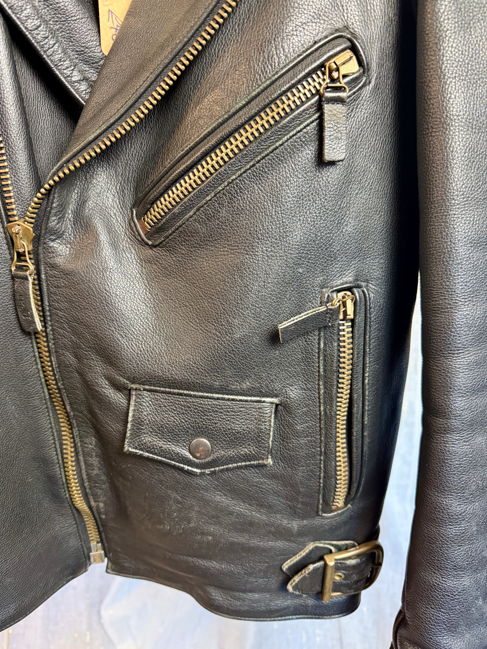 VINTAGE 100% REAL LEATHER BIKER JACKET - UK 10