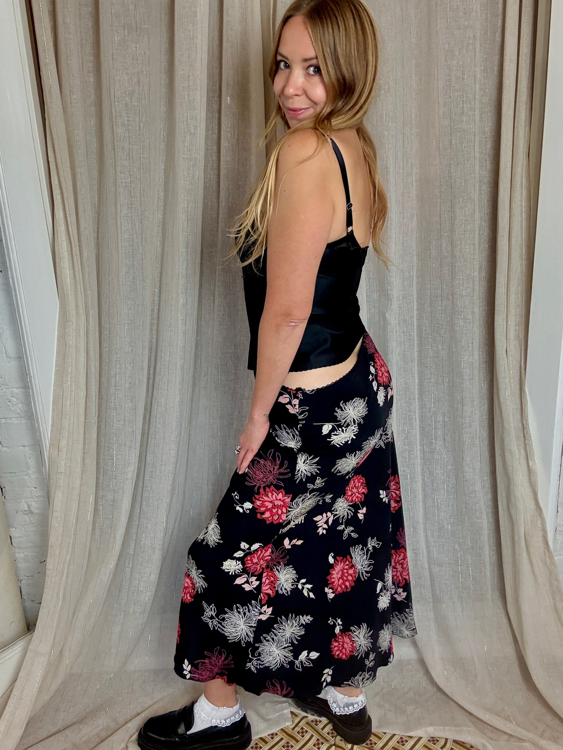 Y2K FLORAL PRINT MAXI SKIRT - UK - 12/14
